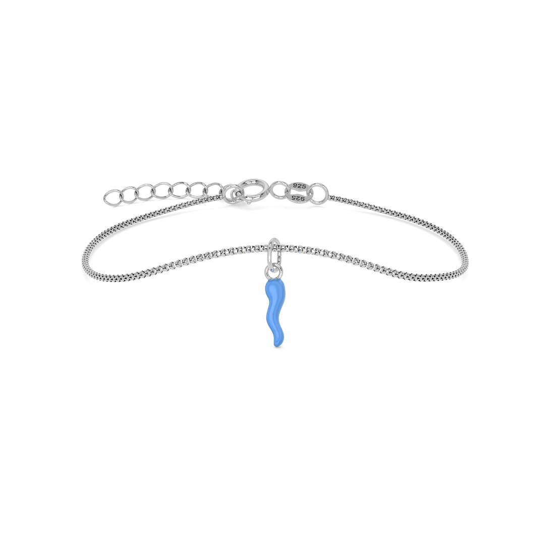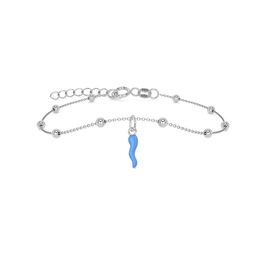 Bracciale Cornetto Portafortuna Azzurro Argento Regolabile
