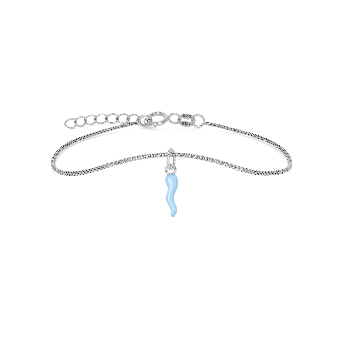 Bracciale Cornetto Portafortuna Celeste Argento Regolabile