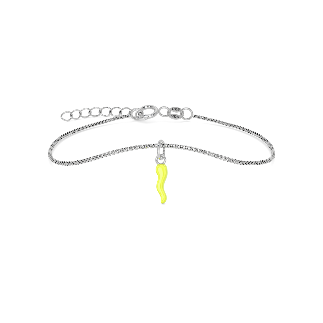 Bracciale Cornetto Portafortuna Giallo Fluo Argento Regolabile