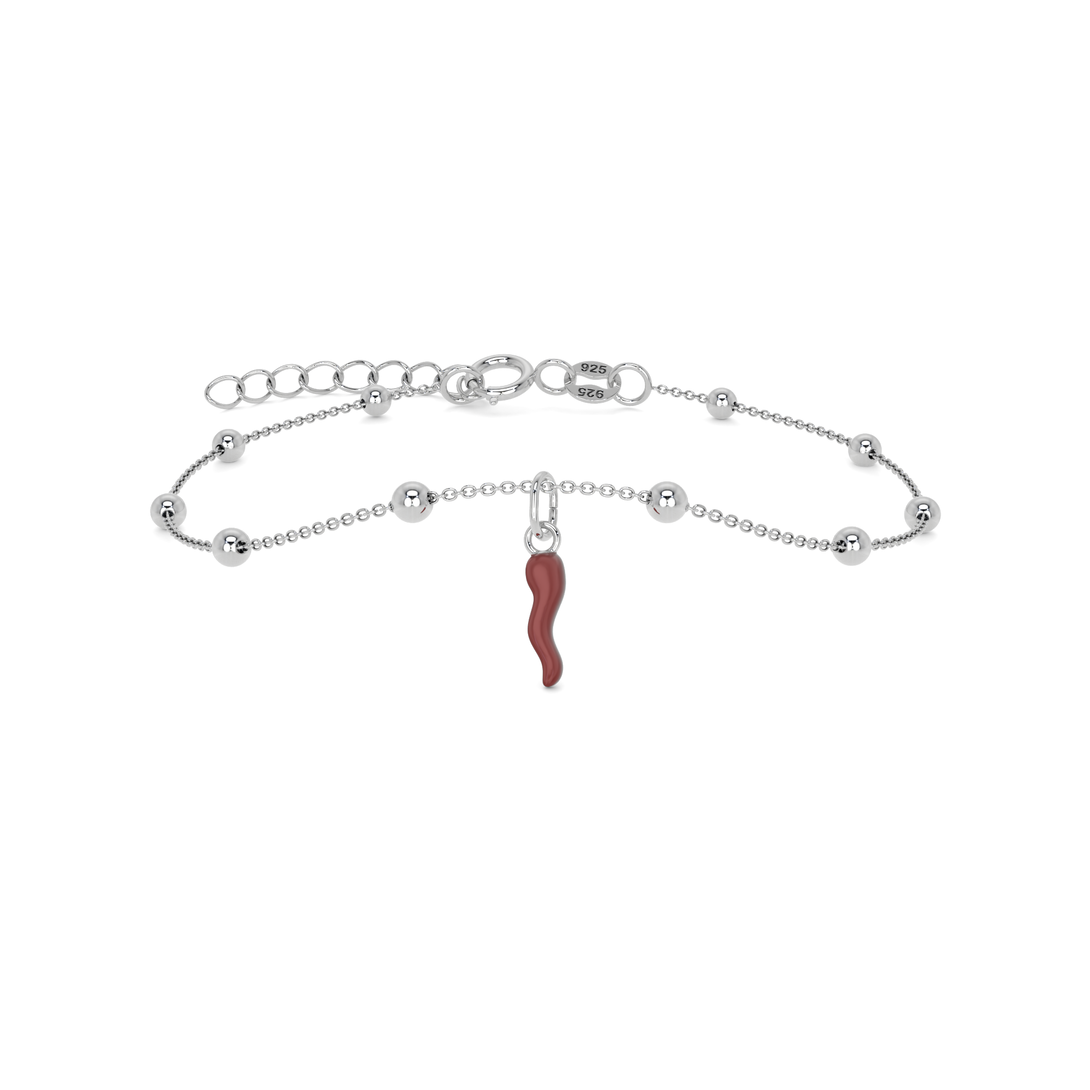 Bracciale Cornetto Portafortuna Rosso Scuro Argento Regolabile