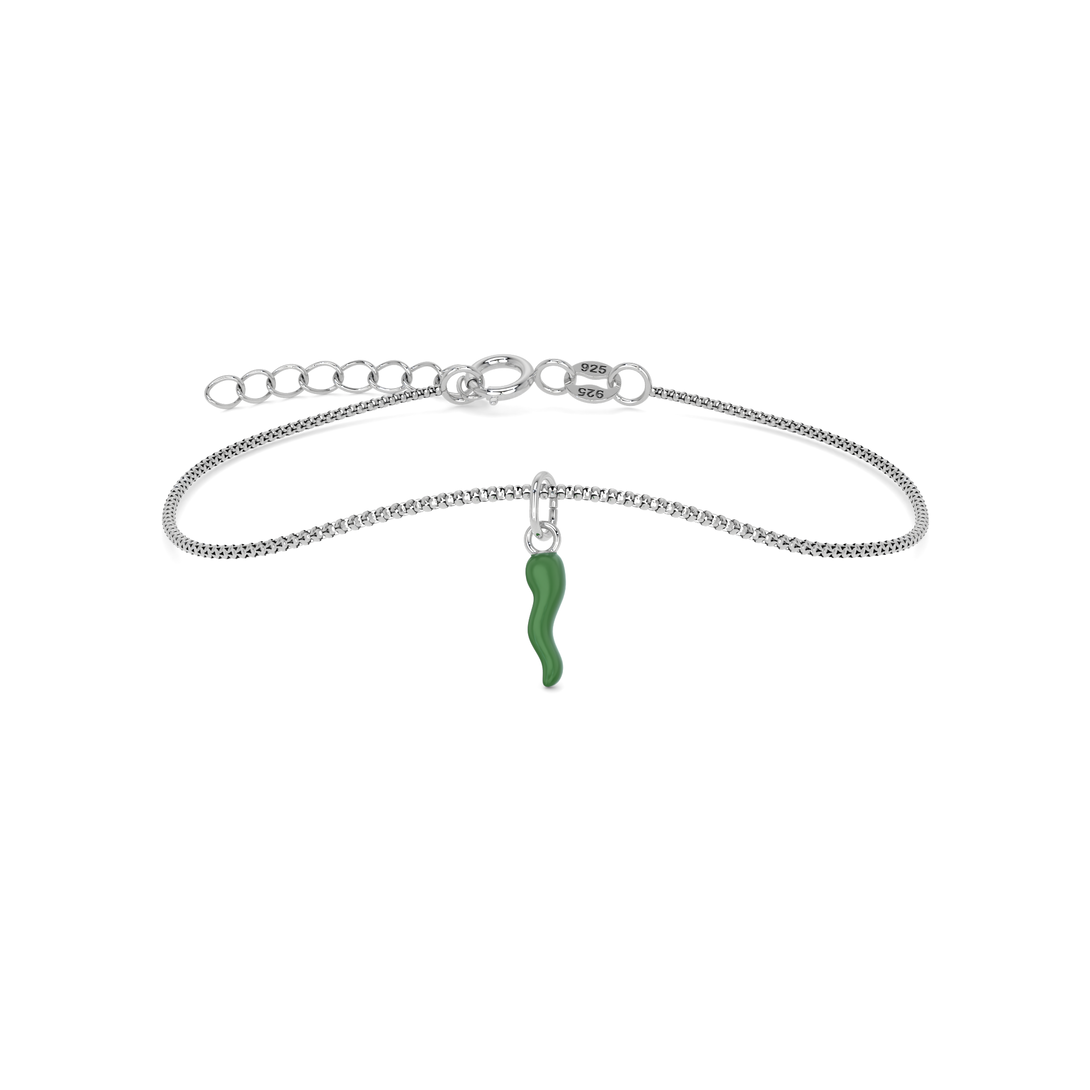 Bracciale Cornetto Portafortuna Verde Argento Regolabile