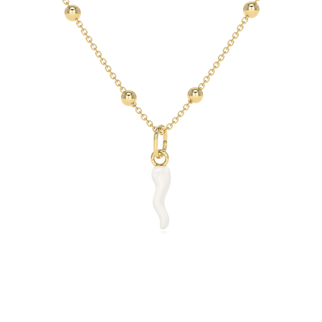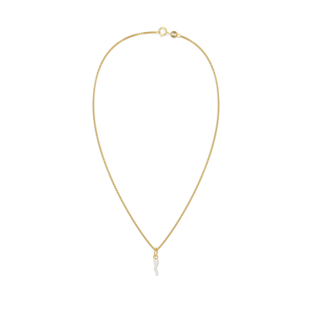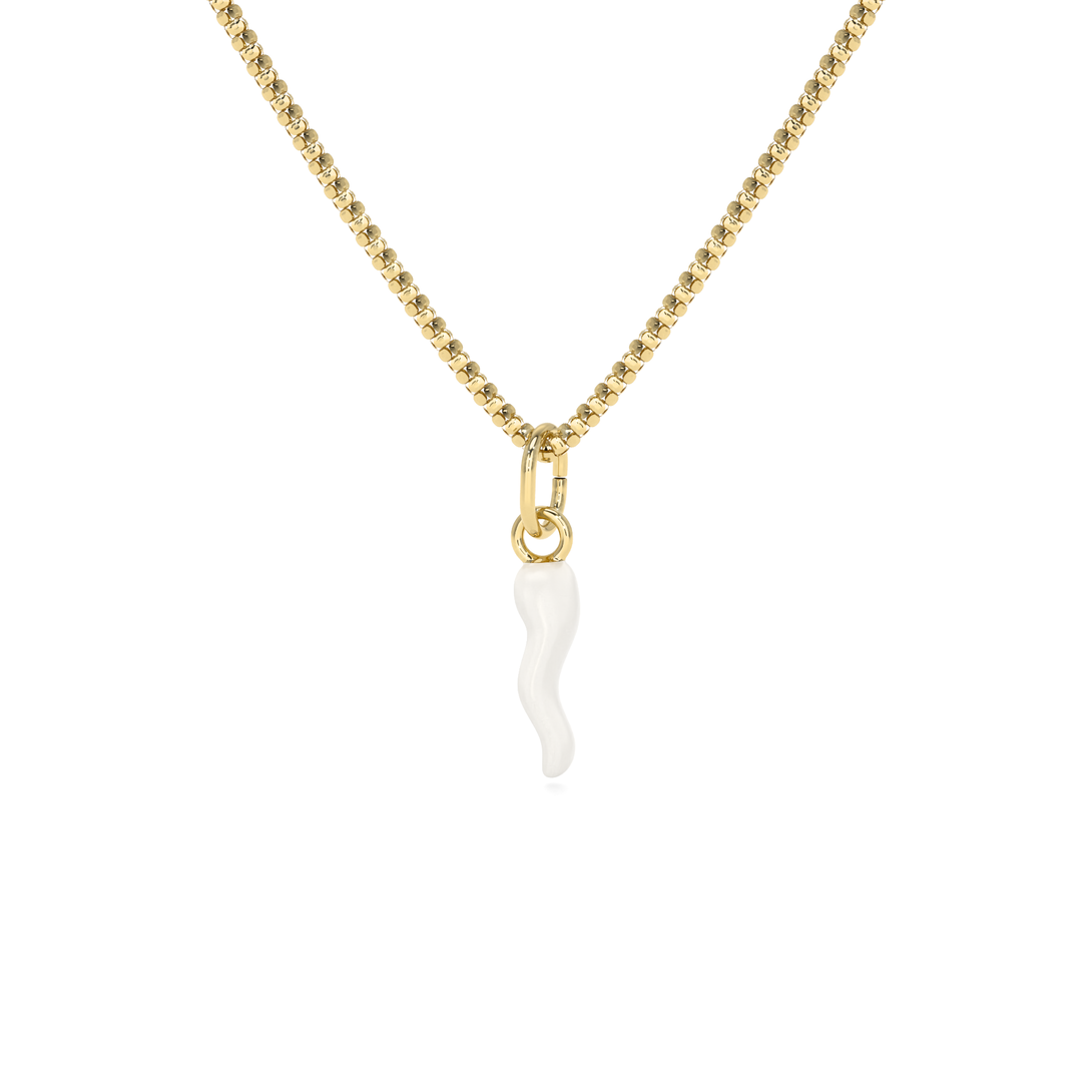 Collana Cornetto Portafortuna Bianco Dorato