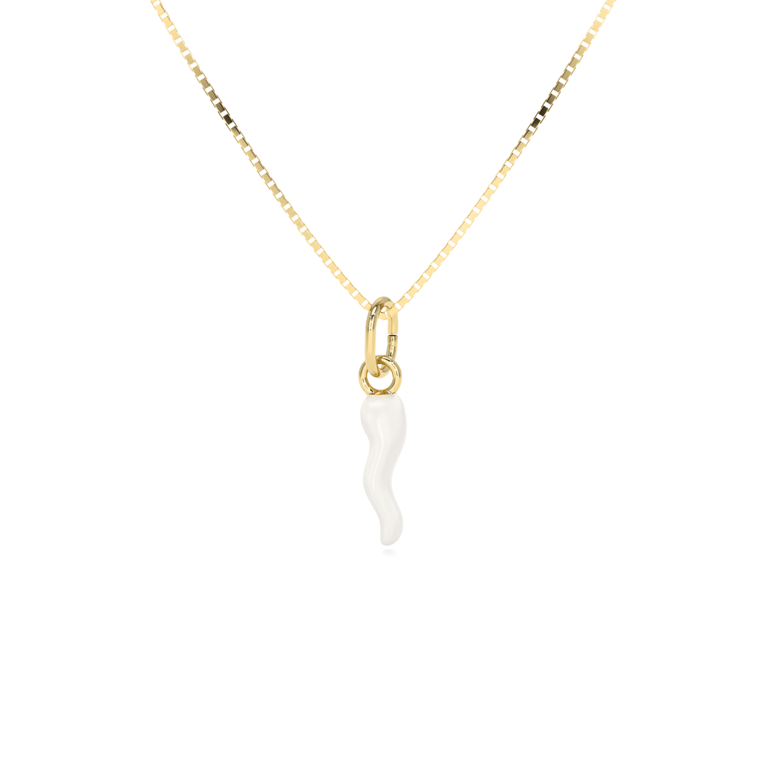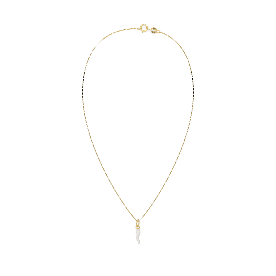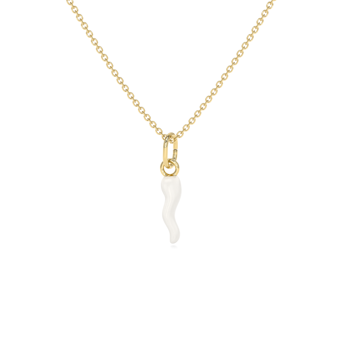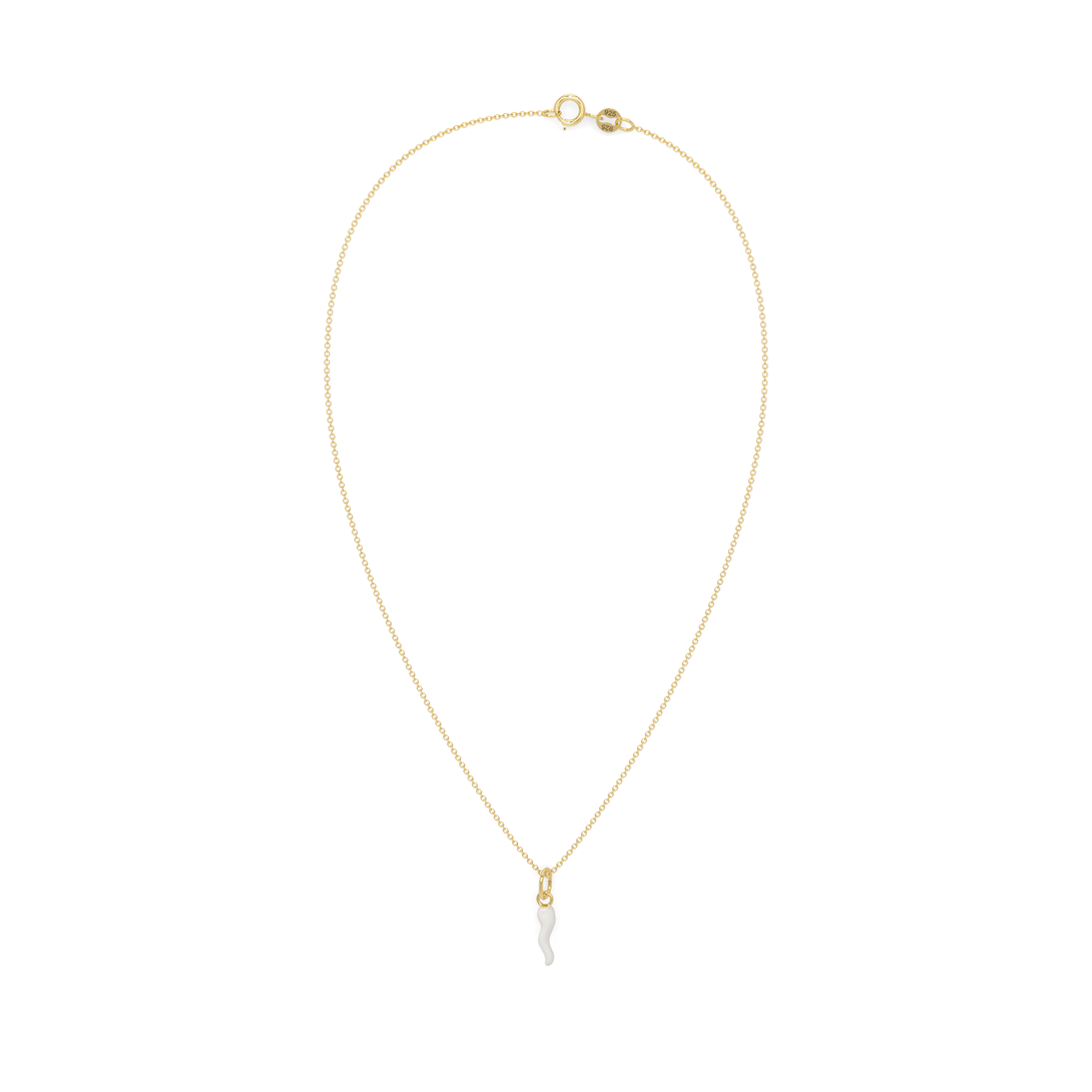 Collana Cornetto Portafortuna Bianco Dorato