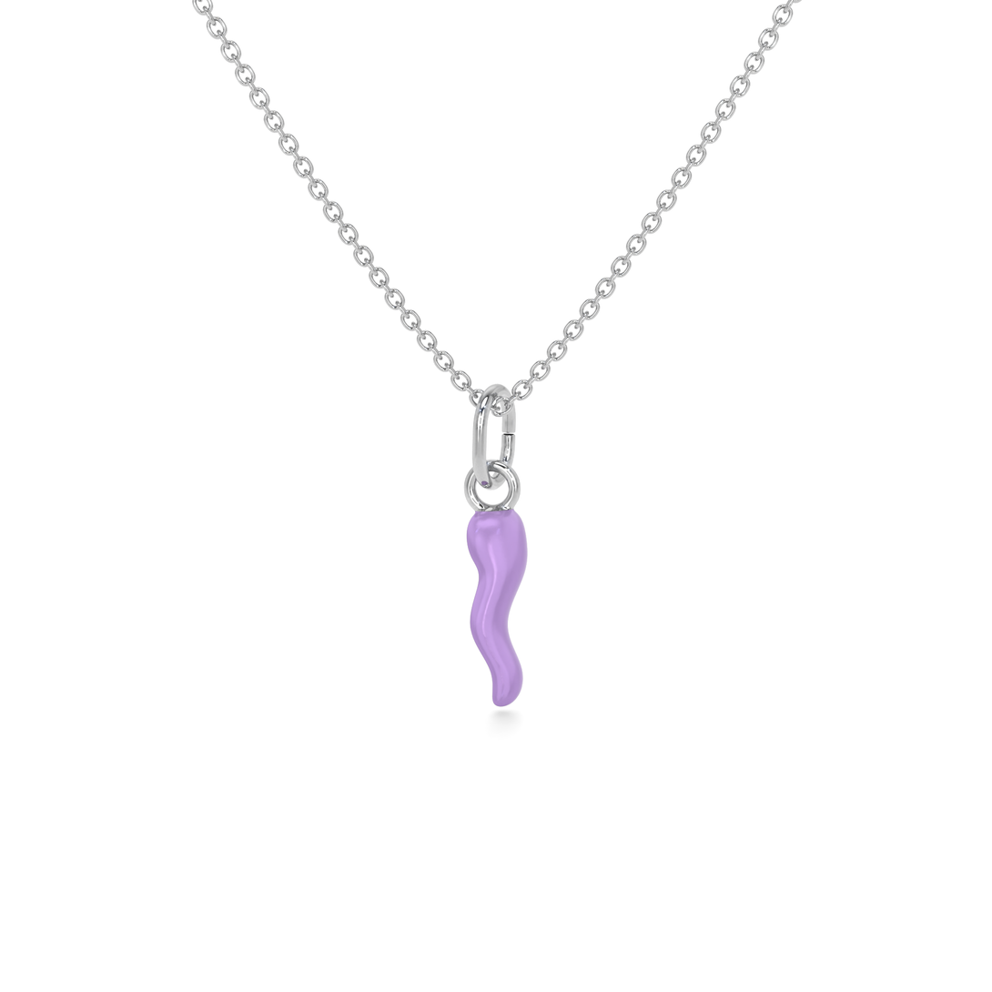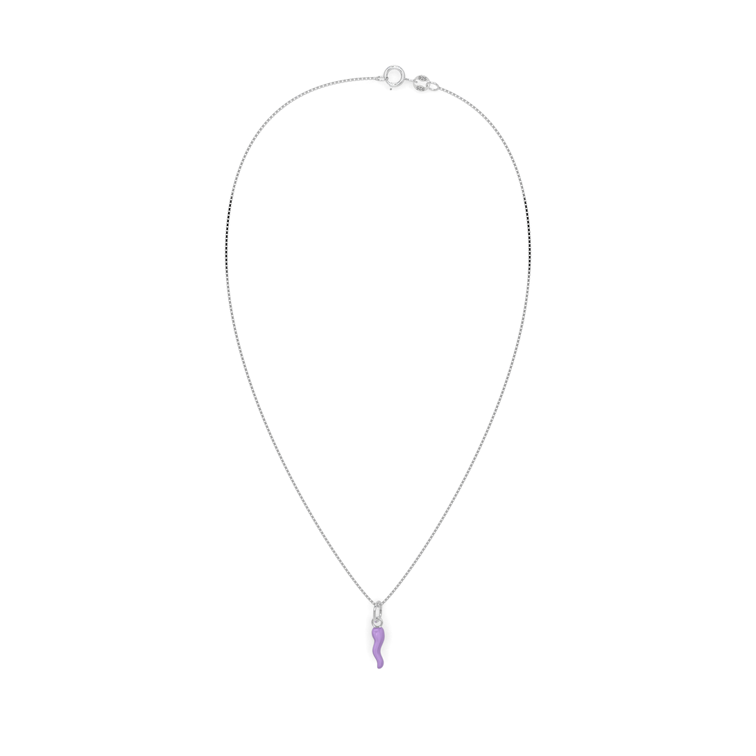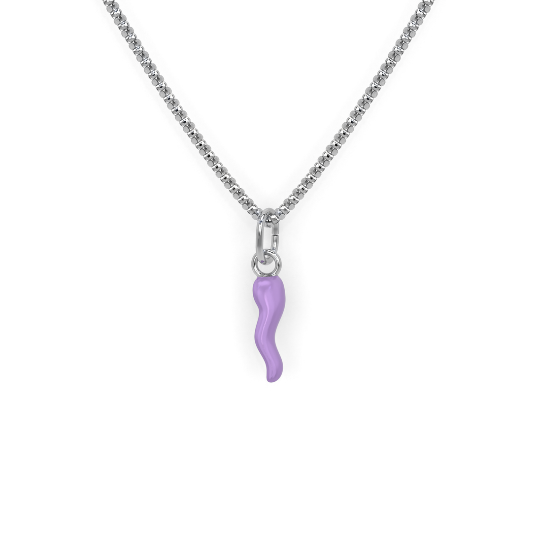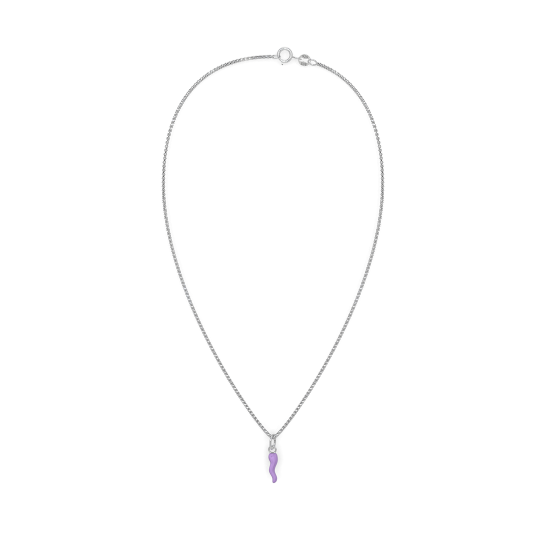 Collana Cornetto Portafortuna Lilla Argento