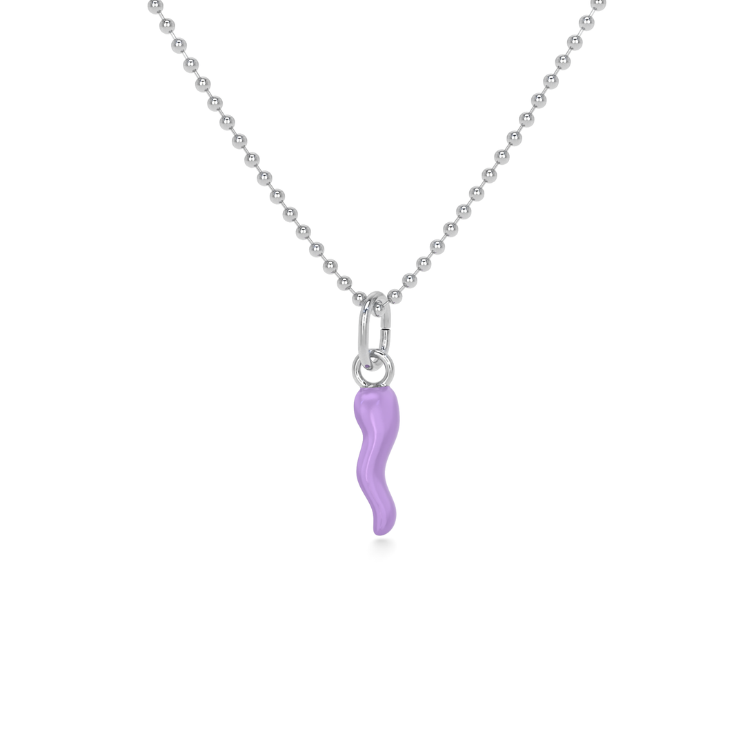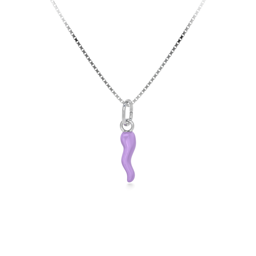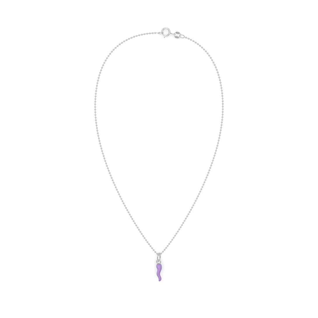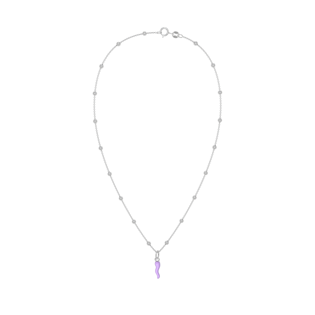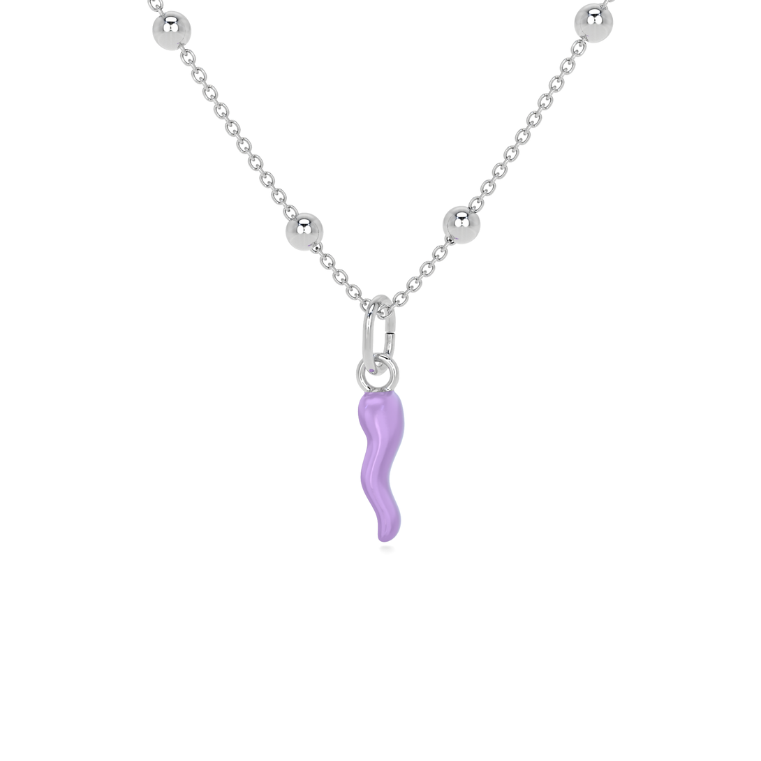 Collana Cornetto Portafortuna Lilla Argento