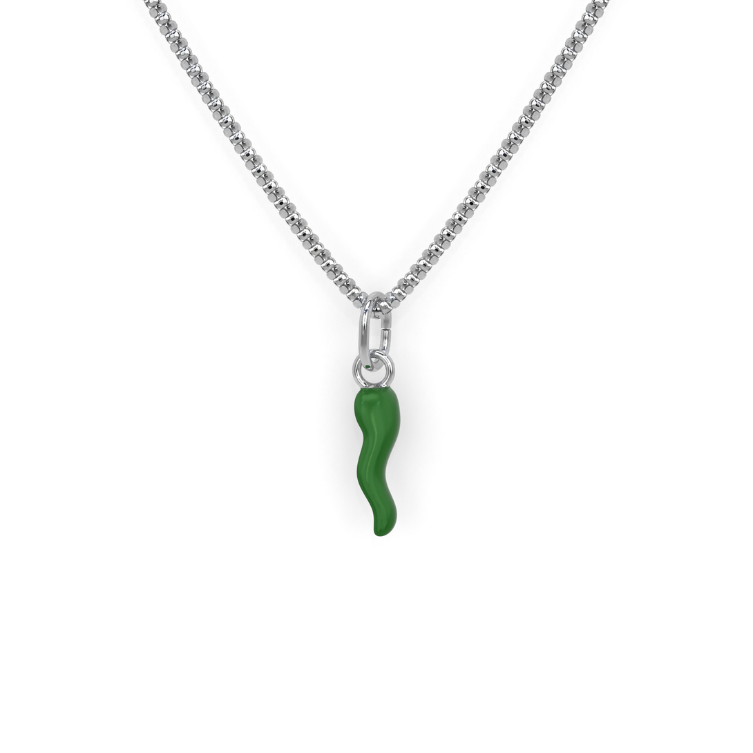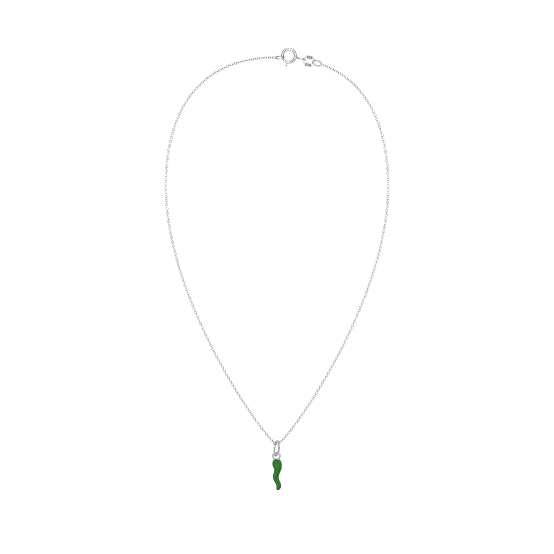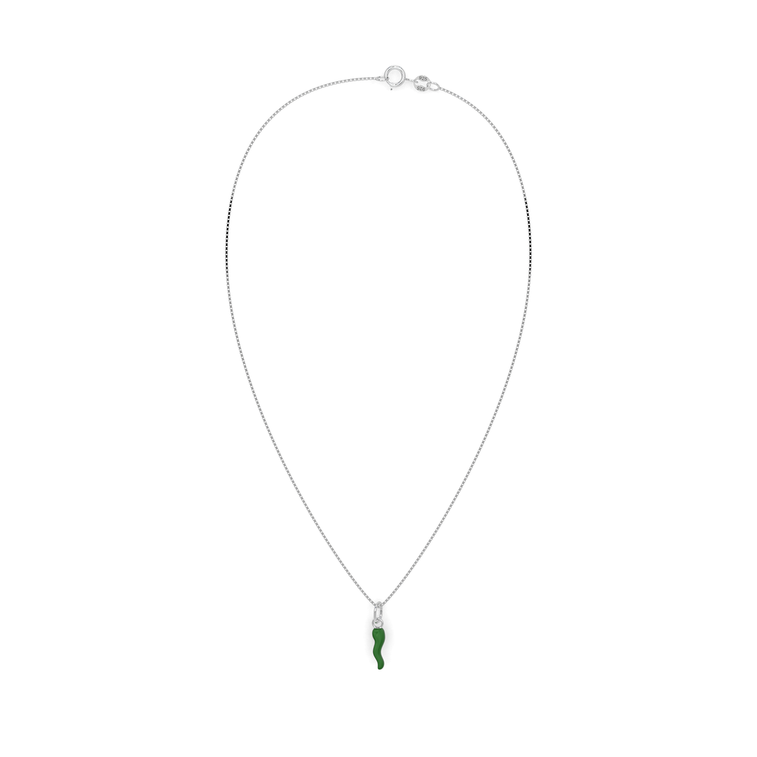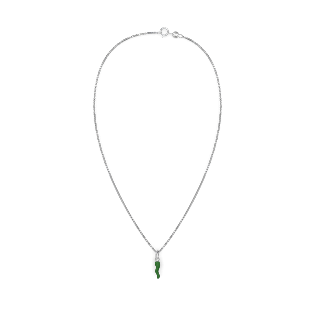 Collana Cornetto Portafortuna Verde Argento