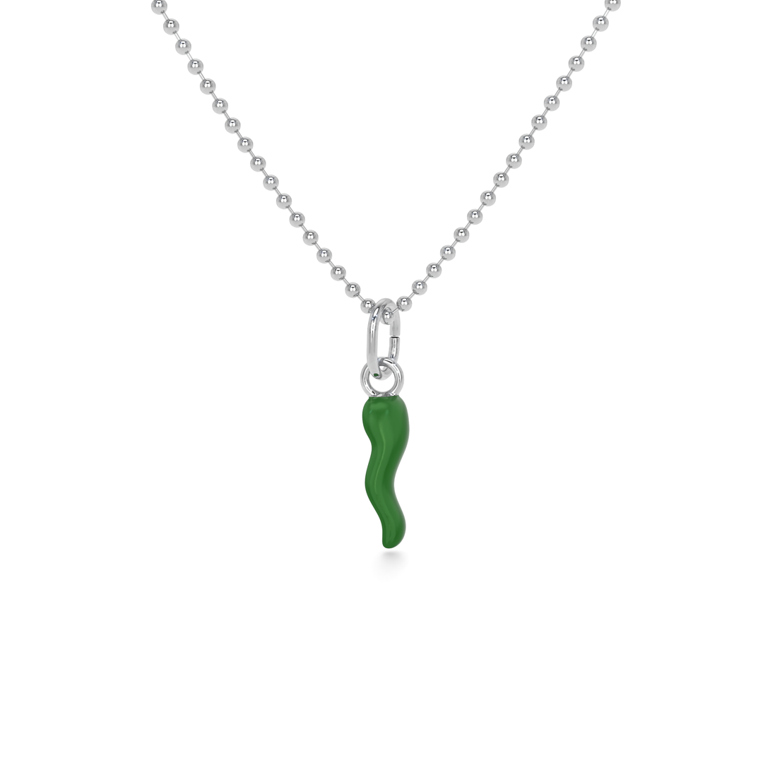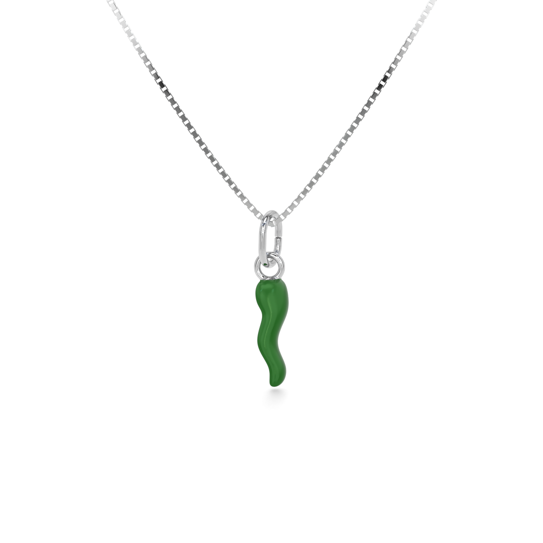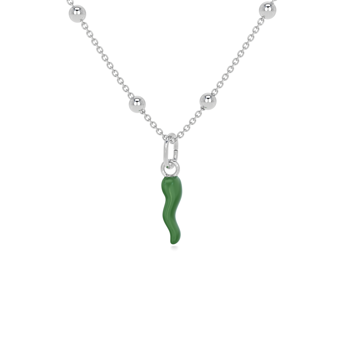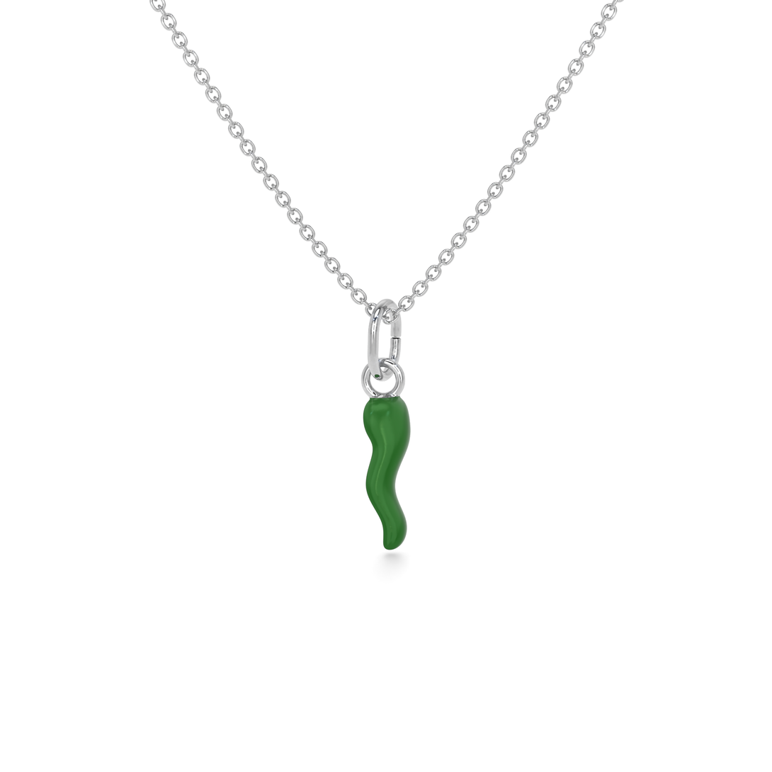 Collana Cornetto Portafortuna Verde Argento
