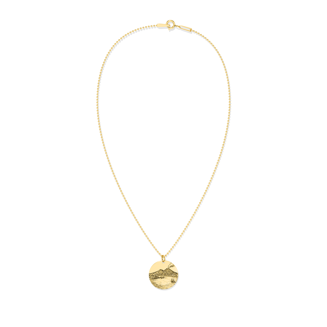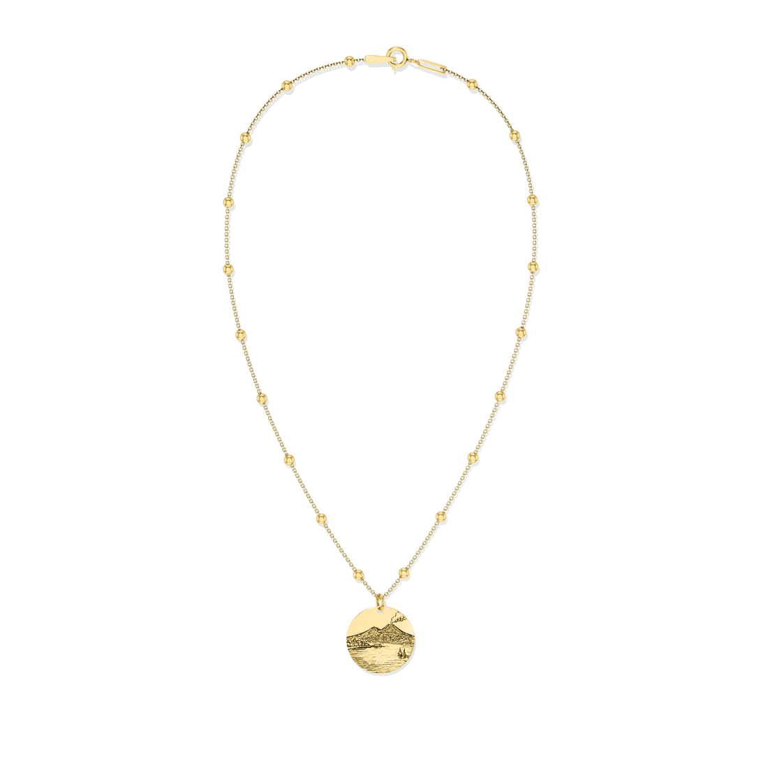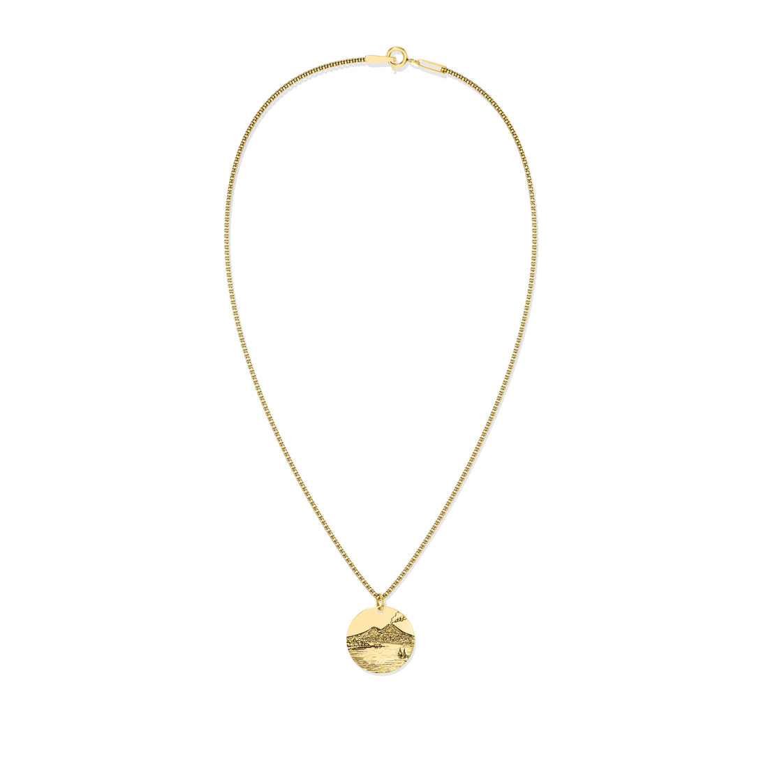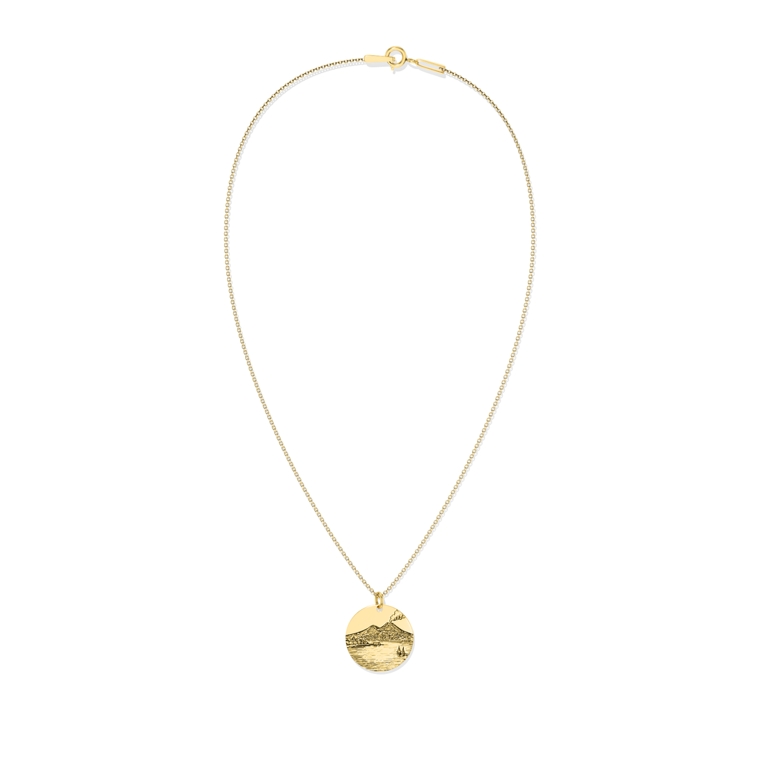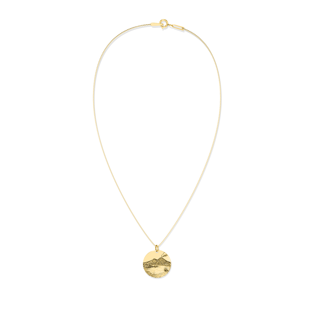 La Collana con Ciondolo Vesuvio e Golfo di Napoli Dorata è un gioiello dal fascino senza tempo, realizzato interamente in Argento 925. Il pendente è un medaglione finemente inciso, che raffigura la suggestiva veduta del Golfo di Napoli con i suoi dettagli iconici. Il disegno è racchiuso da una cornice elegante e armoniosa, che ne esalta la raffinatezza artigianale. Completa di catenina in Argento 925, questa collana è un tributo alla bellezza partenopea, ideale da indossare ogni giorno o da donare come simbolo di legame con una terra ricca di storia e fascino.